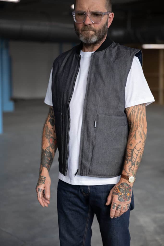 Premium 11.75oz raw denim in a dark indigo / grey shade, from Candiani the world’s greenest denim mill.