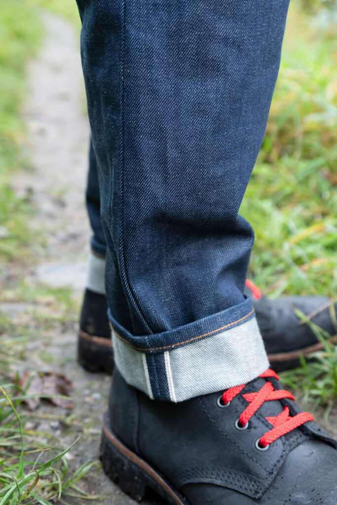 The same cut as our M16 jeans with a narrower thigh, knee and hem. Not “skinny” but as slim as you can get without using dirty stretch denim.