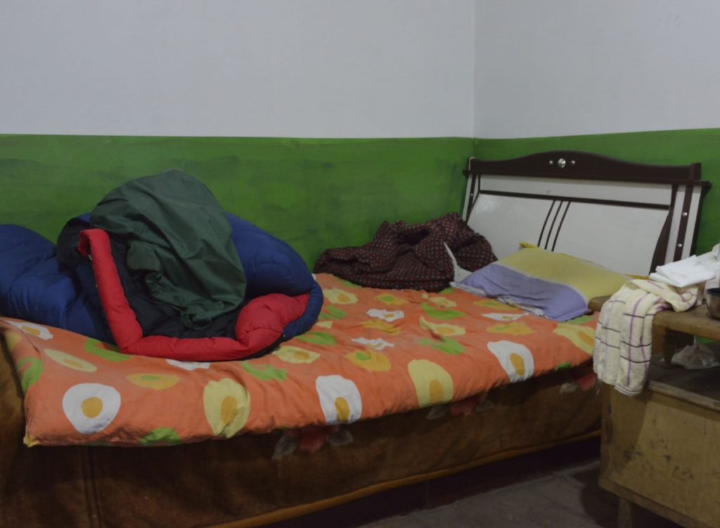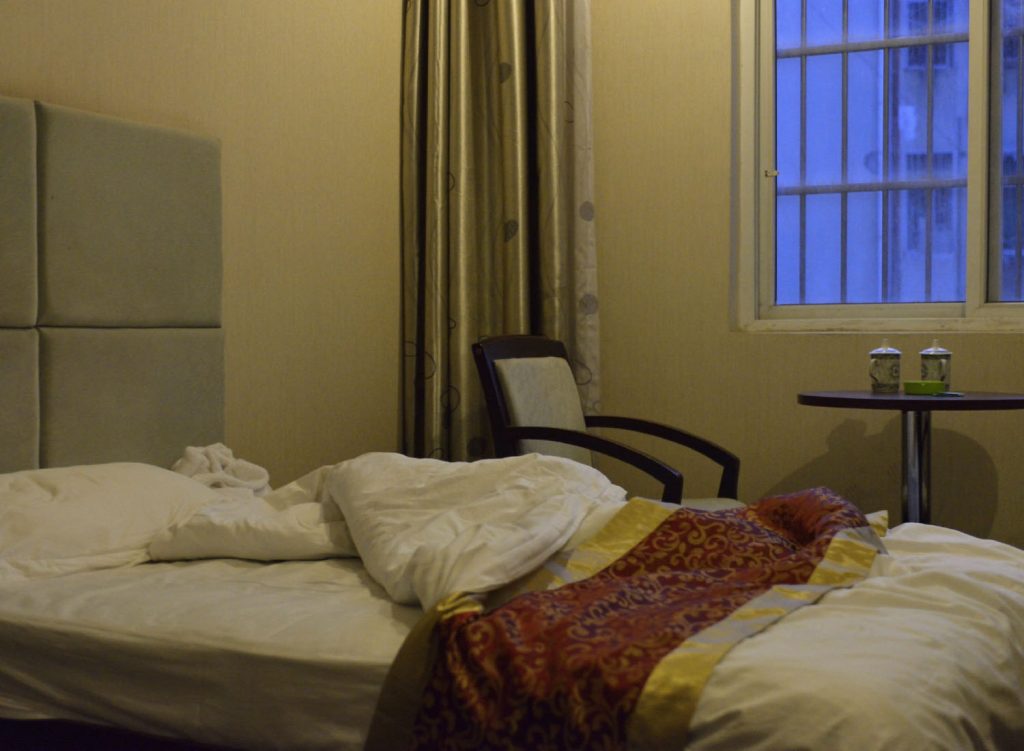 This family hostel is in an extremely scruffy little town. Tiny, smelly little room, no heating, no sink. Outside toilet with a hole dug directly into the earth, everything is laid bare to be seen. It’s about right, much more fitting than the Yushu hotel last night. Let’s see what tomorrow brings.