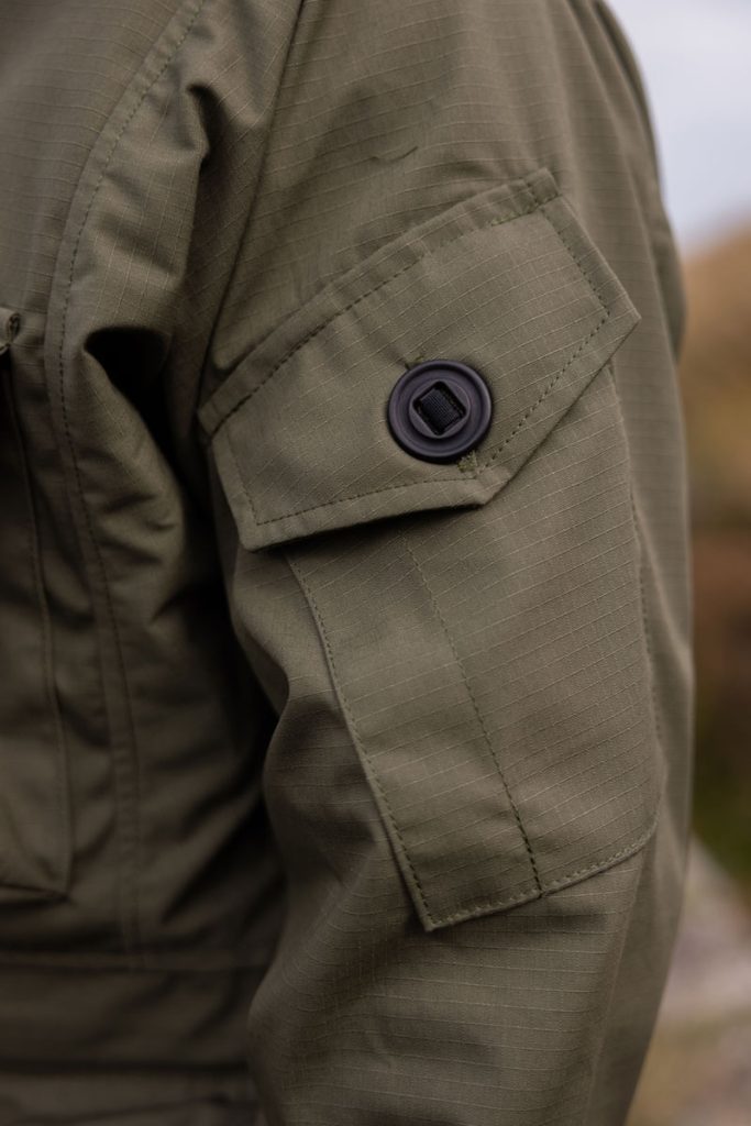 Tough breathable Ripstop outer shell made from 50% organic cotton and 50% recycled polyester. It’s light, quiet and allows the full range of movement that you’d expect from a special forces jacket.