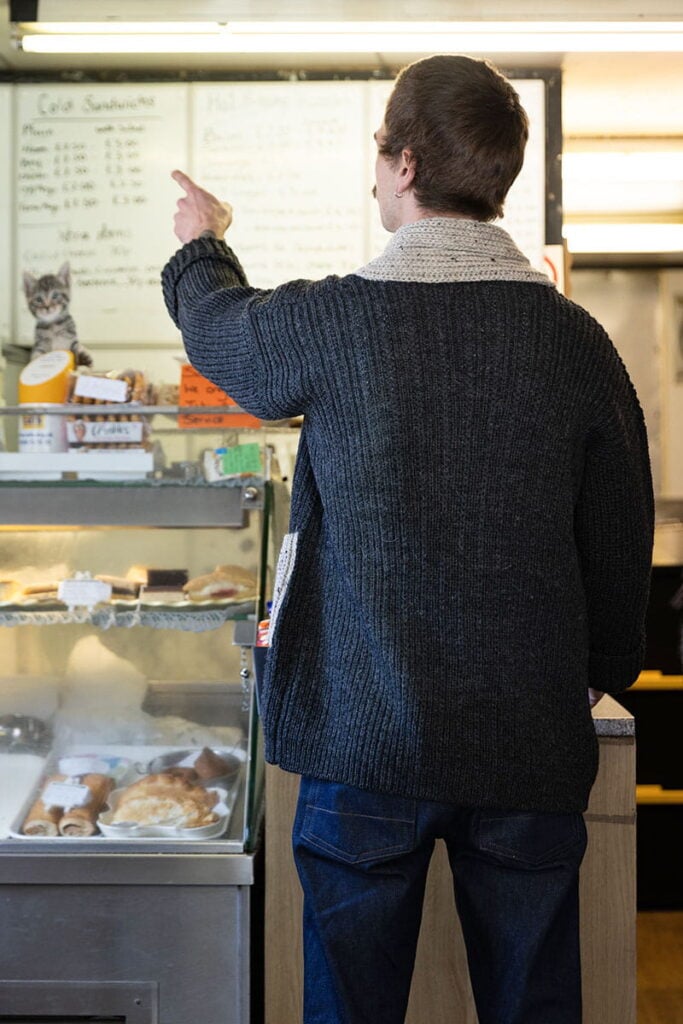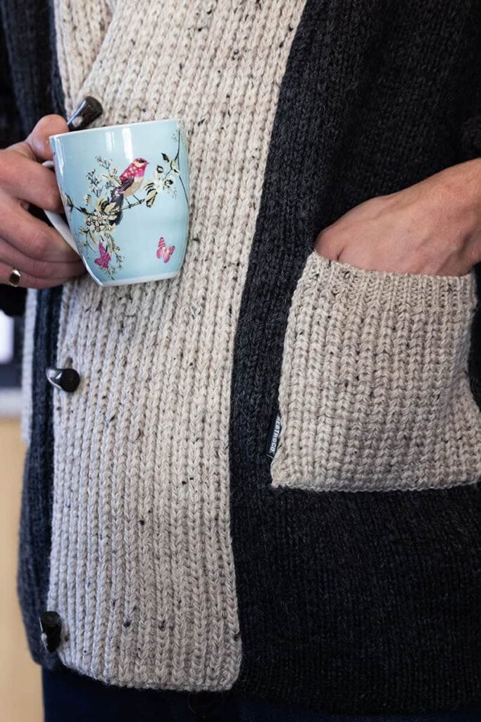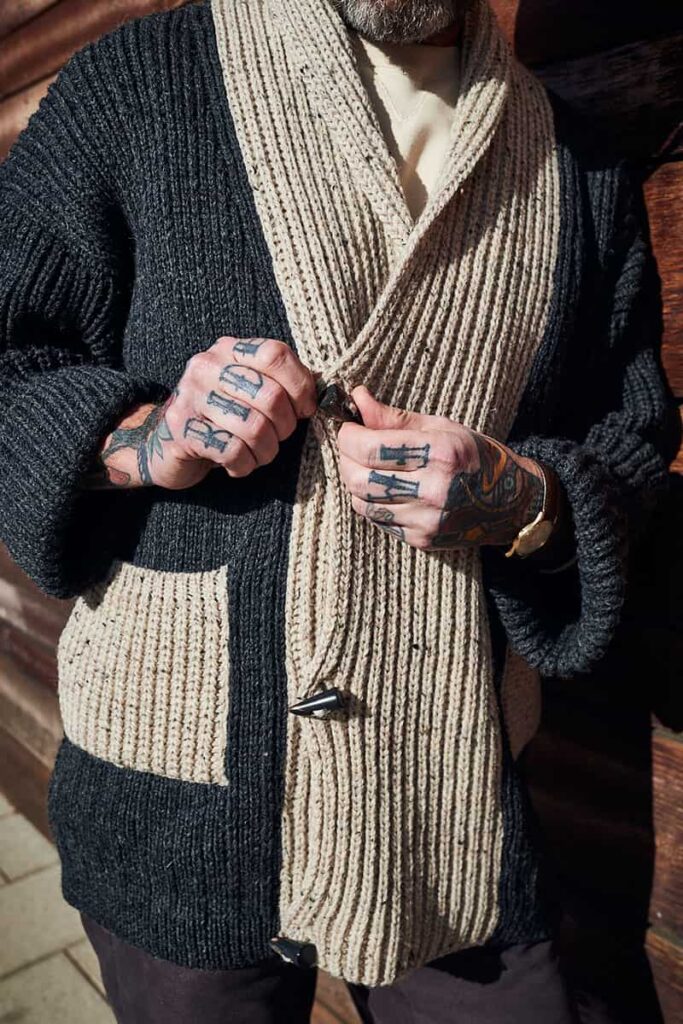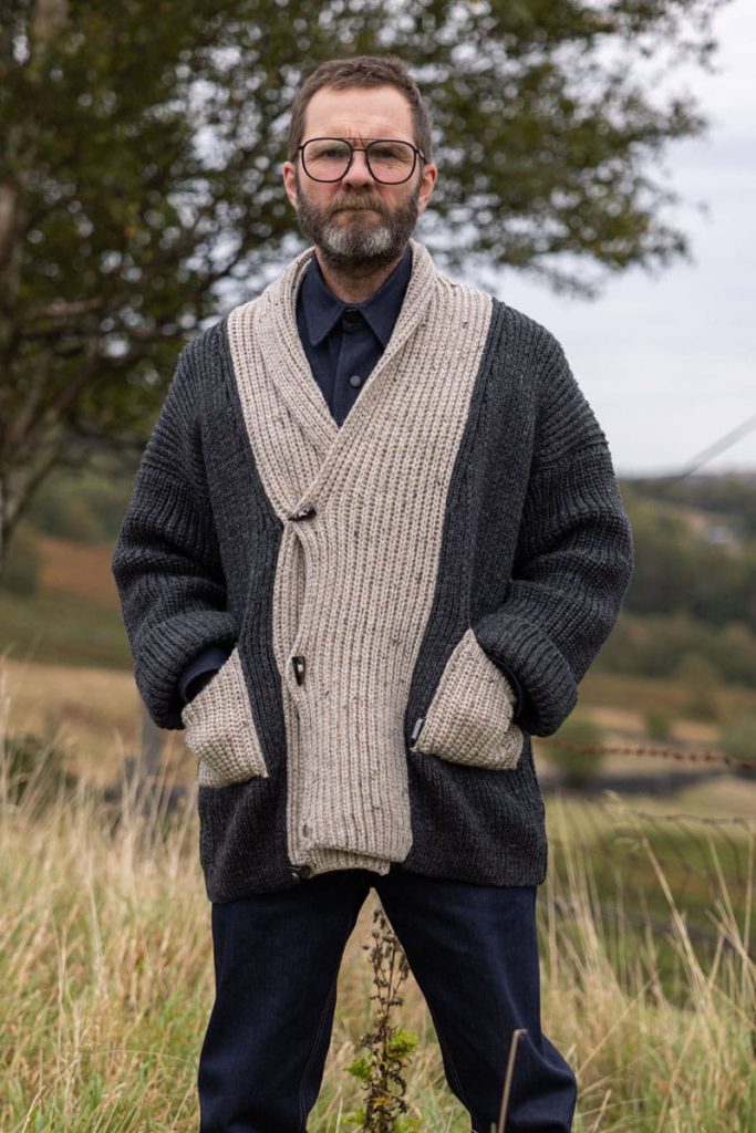 “It’s the sort of cardigan that someone in Ancoats would slip into on a Sunday, in their studio flat to go out for sourdough bread and coffee. Or the lord of the manor would wear whilst surveying all that he owns, standing with his feet spread a yard apart. Forget Cardi B, this is the Cardi A of all cardigans.”