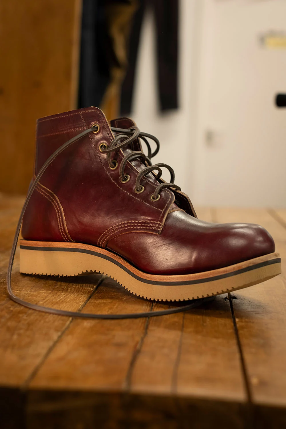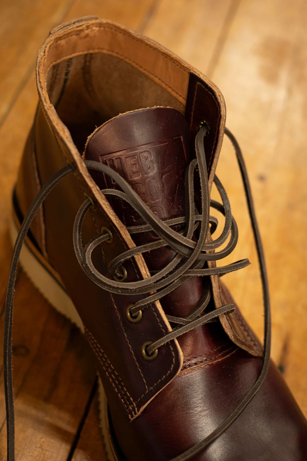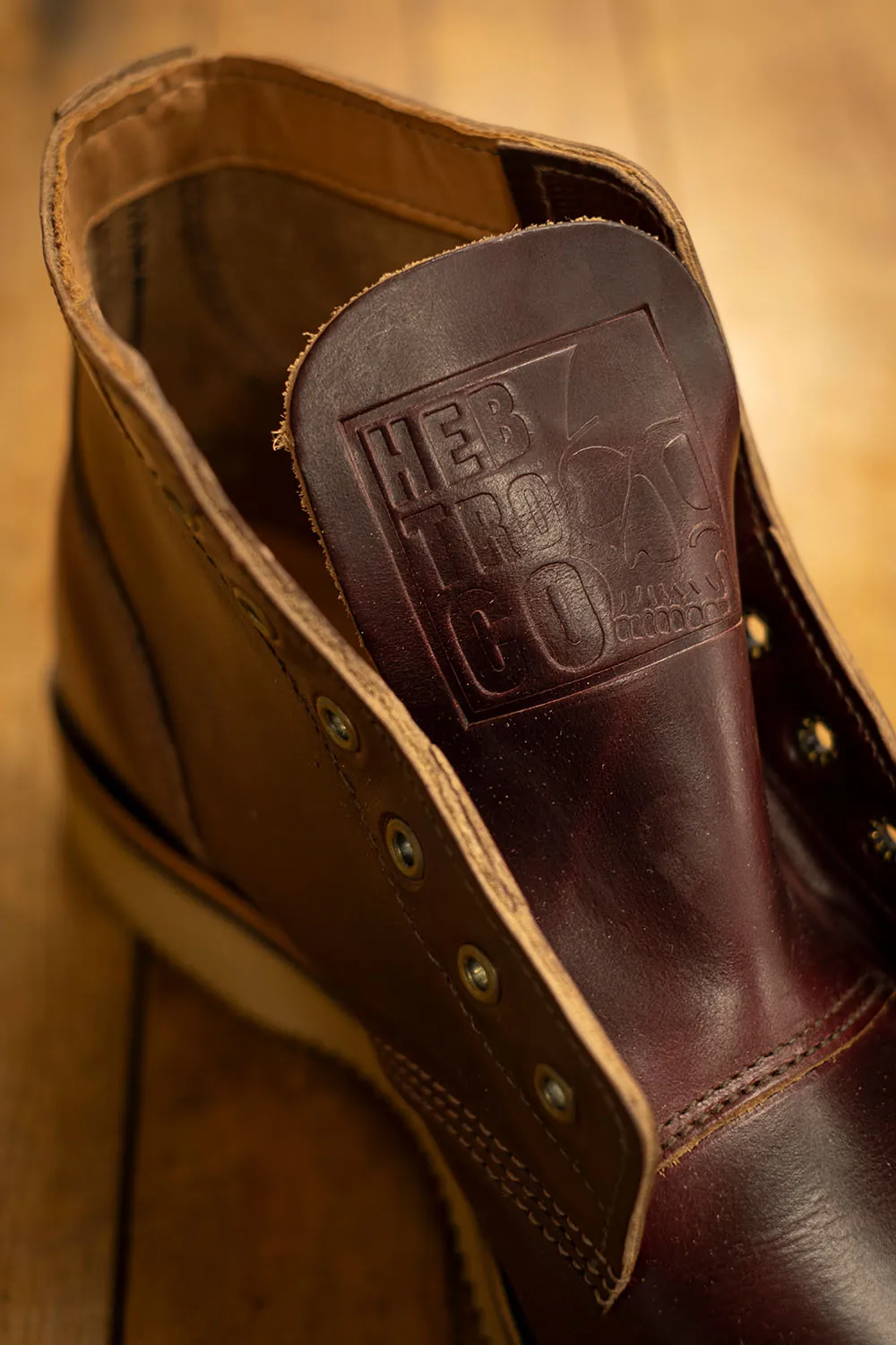 Underfoot you’ll find a Vibram wedge sole, ideal for tarmac and pavements. It’s softer and more forgiving than the traditional commando soles we’ve used on our other boots, making the Ankle Biters feel like walking on a cloud, perfect for all-day wear. There’s a neatly stitched leather collar around the top for added comfort and tip-top quality finish.
