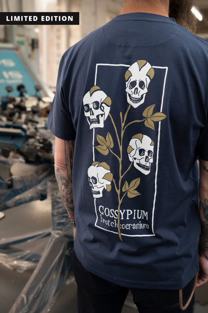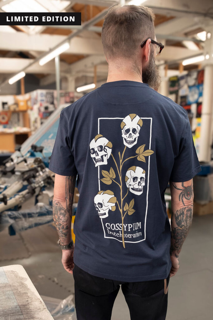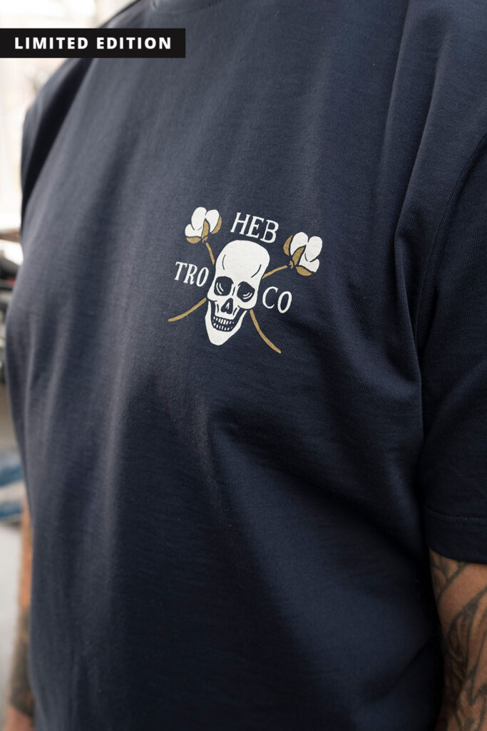 Our latest artwork tee is an ode to this fantastic fibre. The noble cotton plant reimagined with a bit of HebTroCo skullduggery.