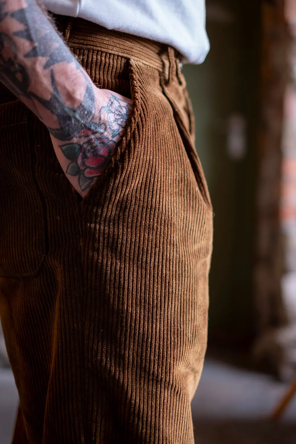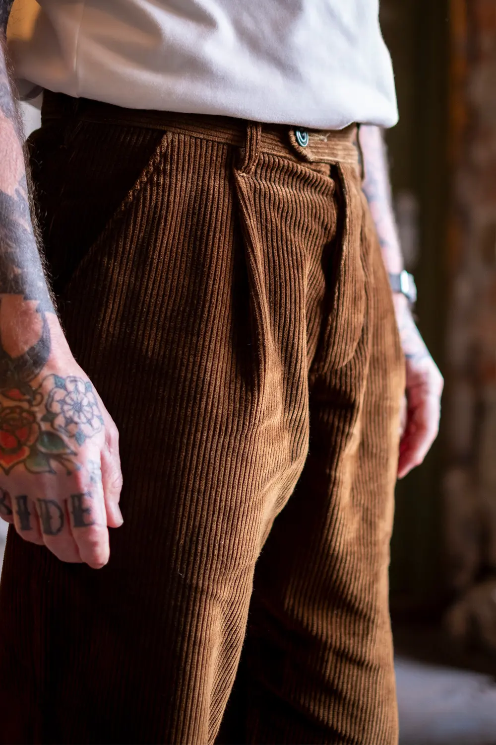Heavy and hardwearing, insulating jumbo corduroy. Cut the same as our winter bestseller the Decade Moleskin Trousers. Loose and elegant in shape, catching the light like a fine glass of cognac. Pleated at the waistband. Comfort, style and our signature made-to-last quality.