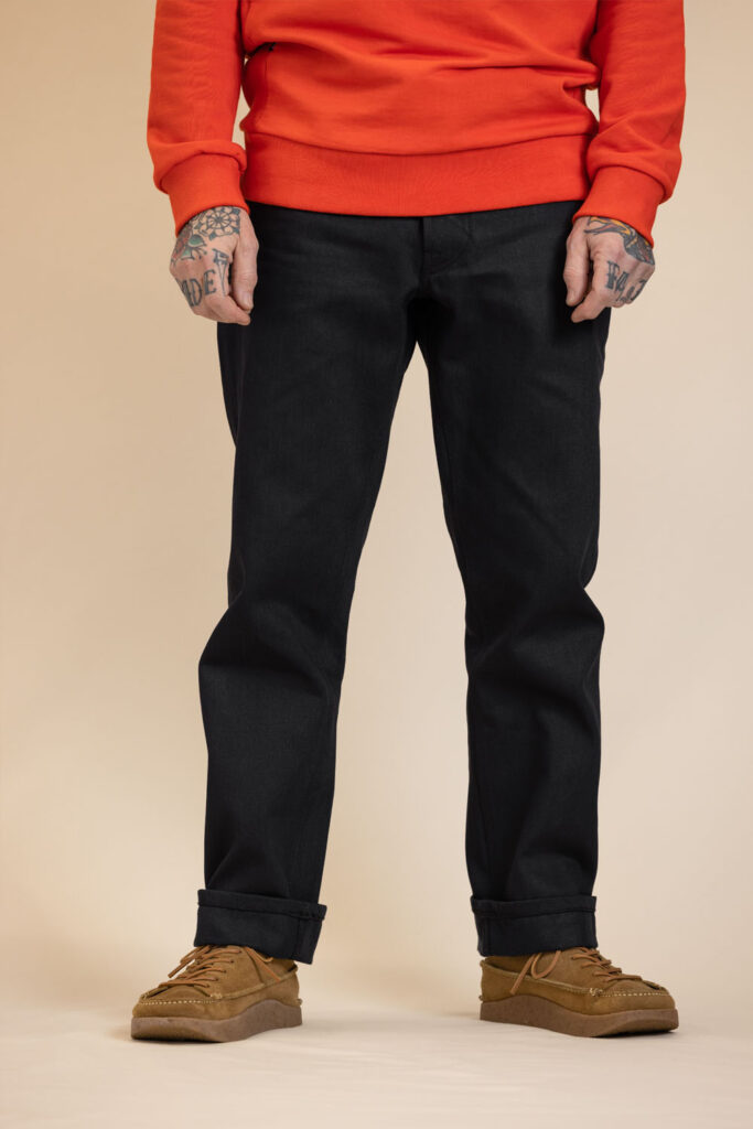 Our classic GVNR slim straight leg jeans in a heavy 16oz double black selvedge.