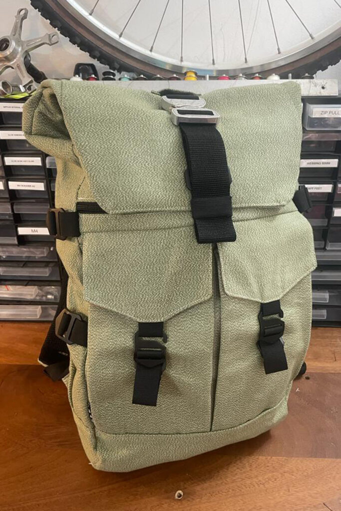 A heavy canvas rucksack designed and put together by aerospace engineer, ultra-distance adventurer, and friend of HebTroCo, Shaggy.
