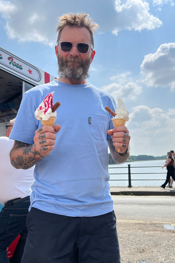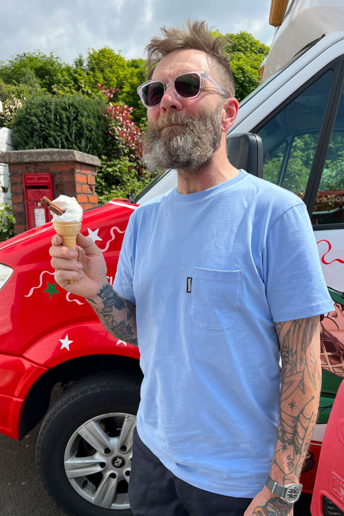 Knitted into jersey in Leicester. Sewn into T-shirts back in Manchester. That’s pretty local right?