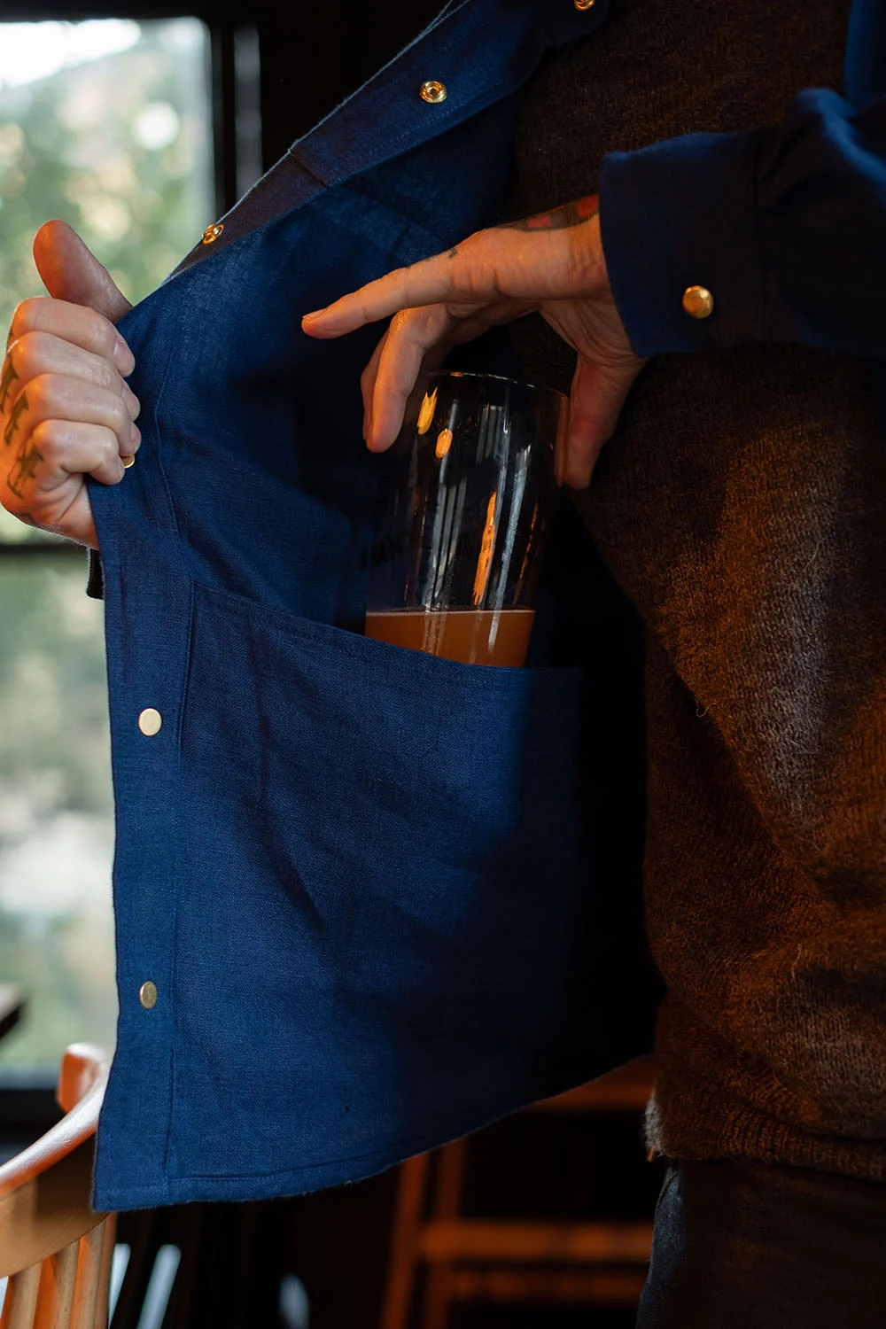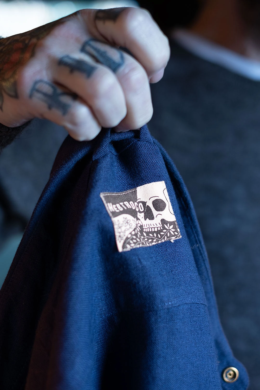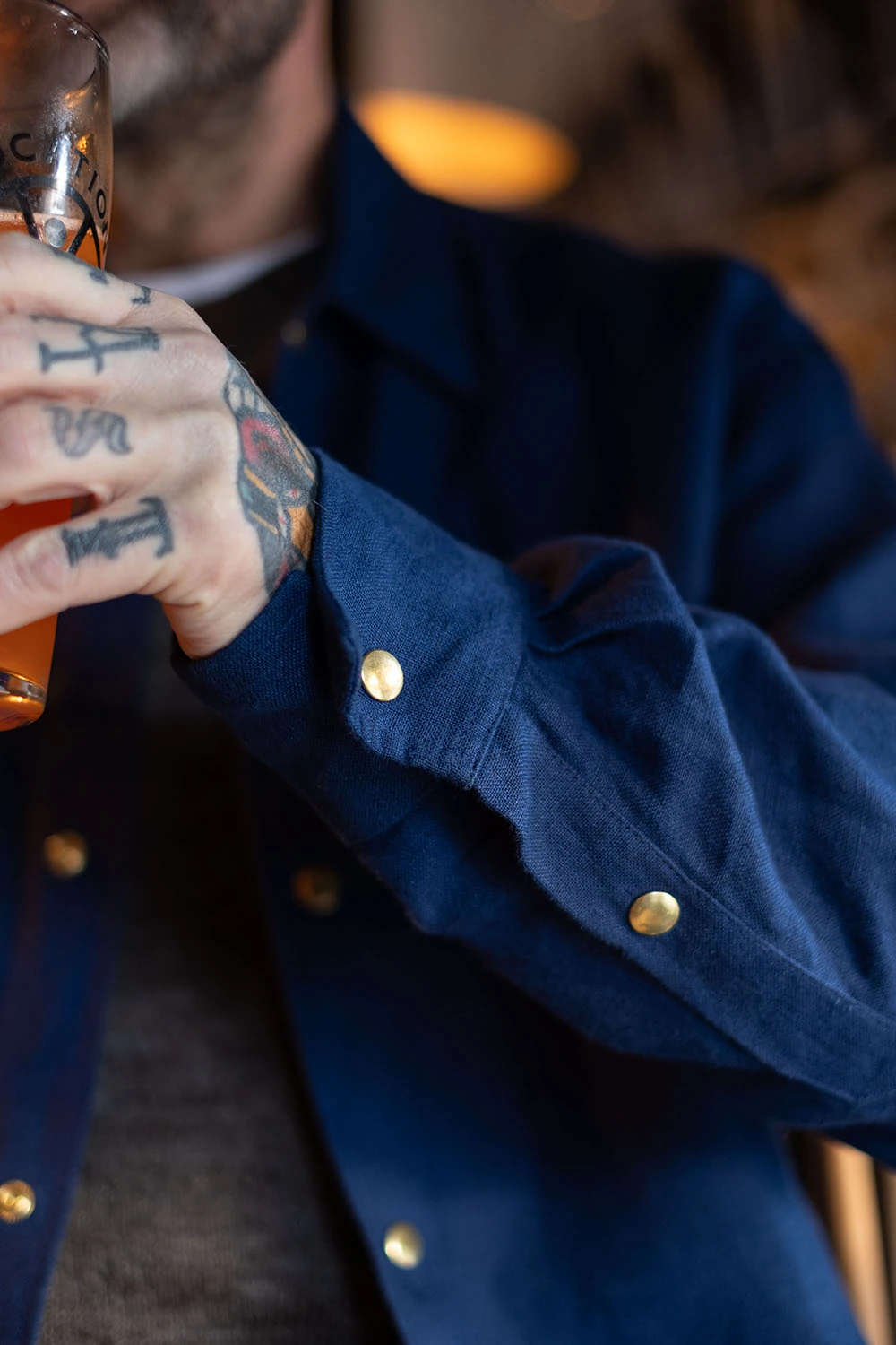Our all new linen Iron Shirt. All the same features as the HebTroCo classic Iron Shirts but in a softer, lighter, very easy to wear set up. This is less of a jacket than the heavy irons. Not just for warm days though, this layers up lovely for colder days and is the Iron Shirt you can wear indoors at parties!