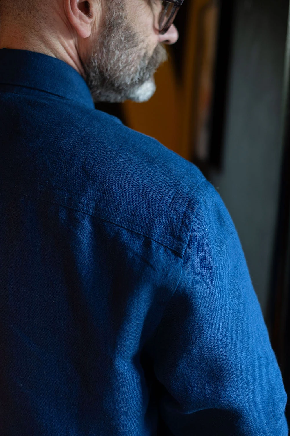 From Brisbane Moss in Burnley. The same as used to make our Buff Linen Overshirt, this time in a gorgeous French blue. -