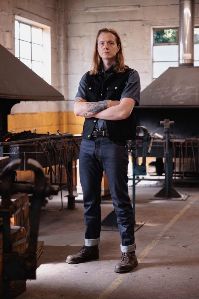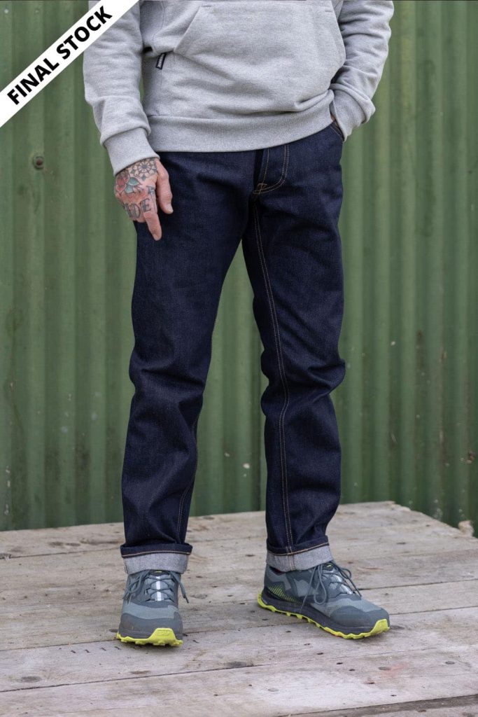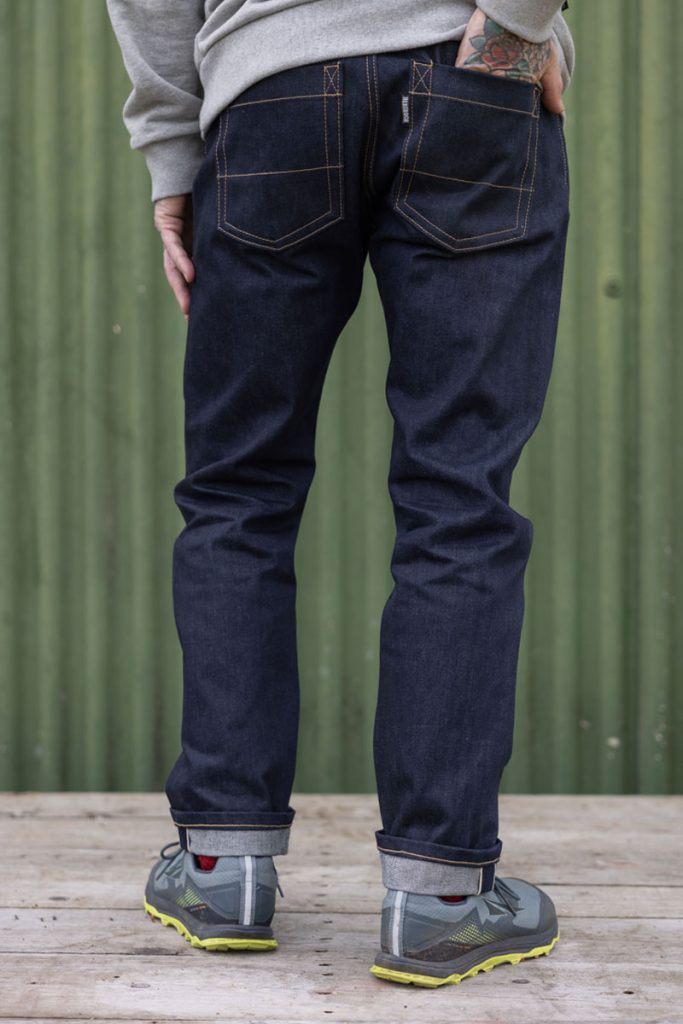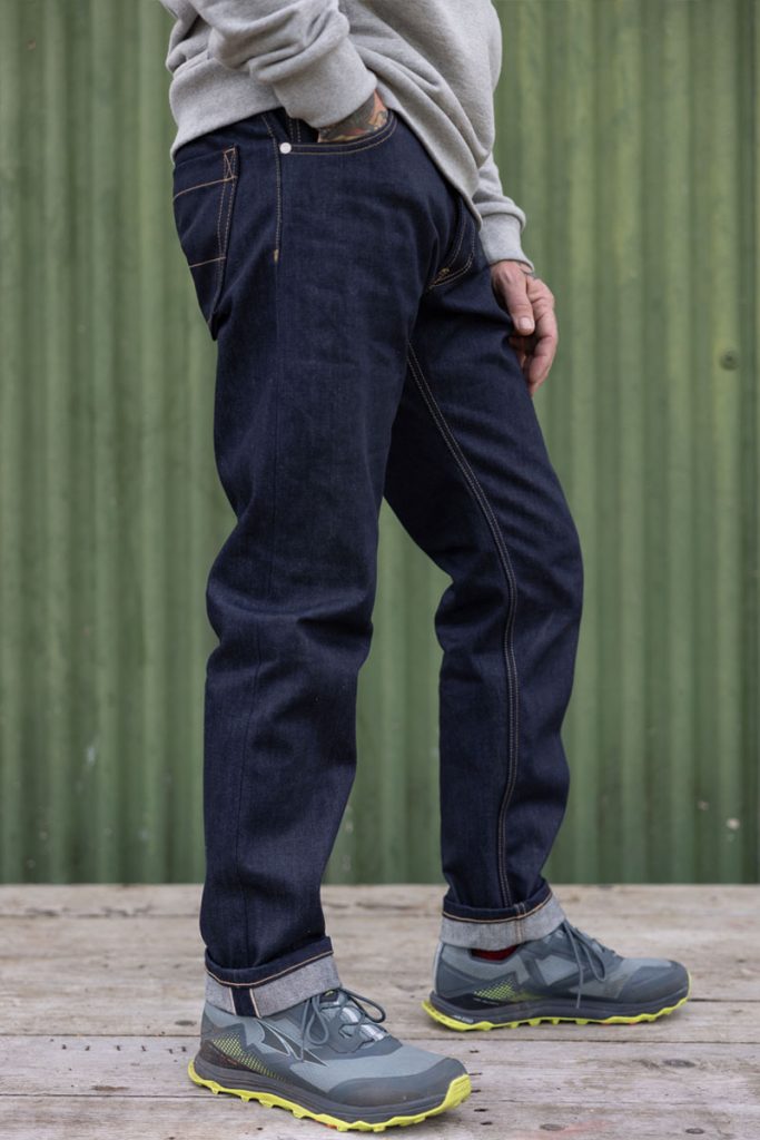 The slimmest jeans we do with narrower thigh, knee and hem. Not “skinny” but as slim as you can get without using dirty stretch denim.