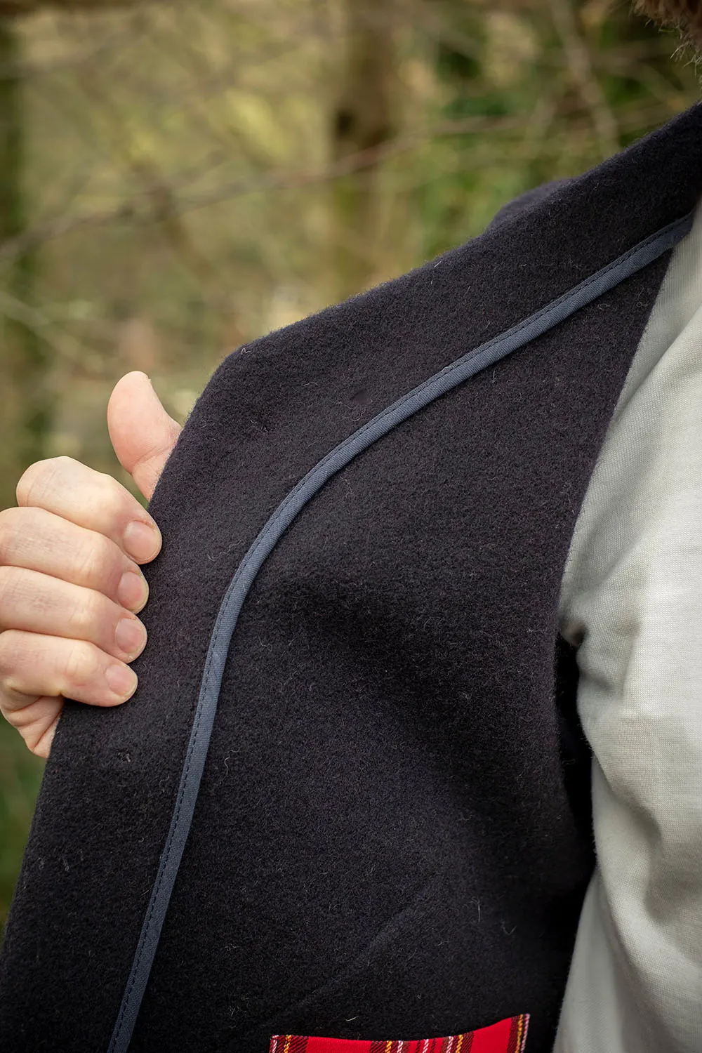 The D-shaped front pockets are generous and positioned to give your hands a comfortable spot to rest while you’re stood watching the world or waiting for the kettle to boil. Lined on the outer-face in a striking Royal Stewart tartan, echoed in the two internal pockets and hanging loop. The rest is beautifully finished with bound seams. No shortcuts. No loose edges. And because it’s unlined, you get that same soft raised Melton against your body too. Lovely.