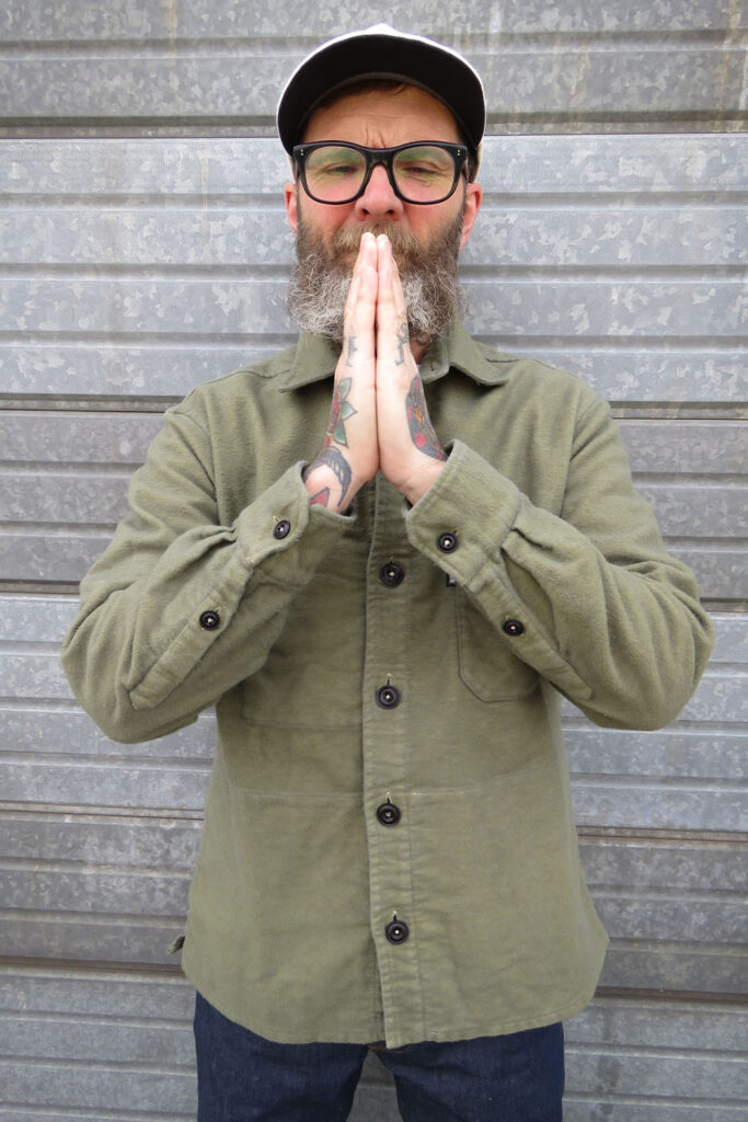 This is an overdyed version of our popular Moleskin Overshirt V2. Vintage looking, slightly distressed finish.