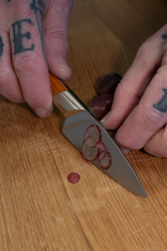 Weighty in the hand and super sharp. Slicing carrots, peeling apples and mincing garlic will never feel like a chore again.