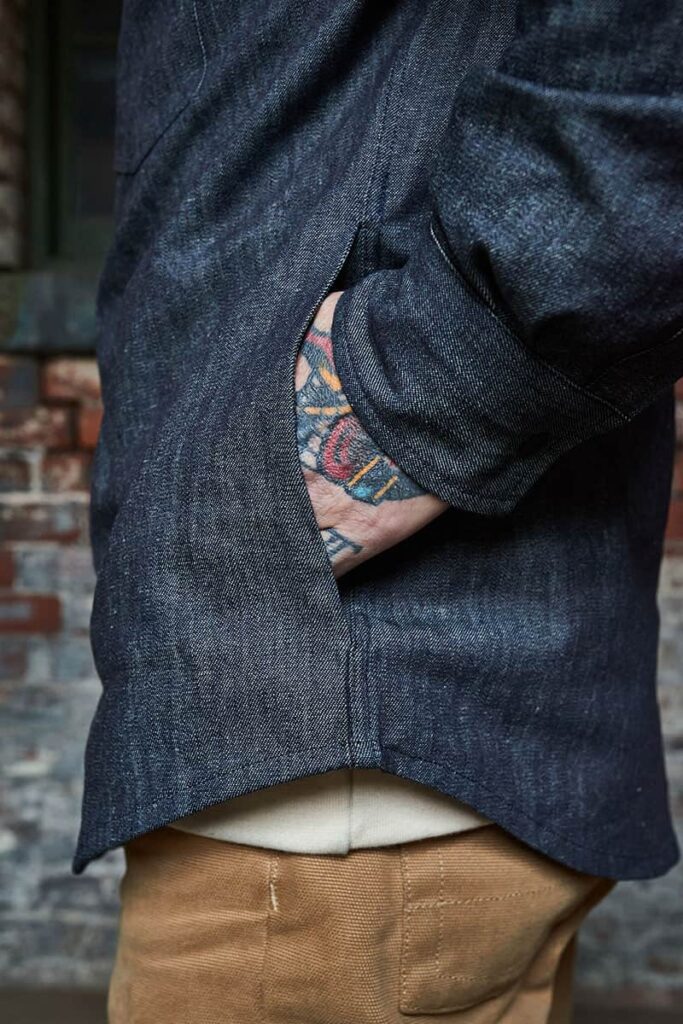 The spring/summer weight overshirt in 8.5oz selvedge indigo denim gently woven on 1950s shuttle looms.