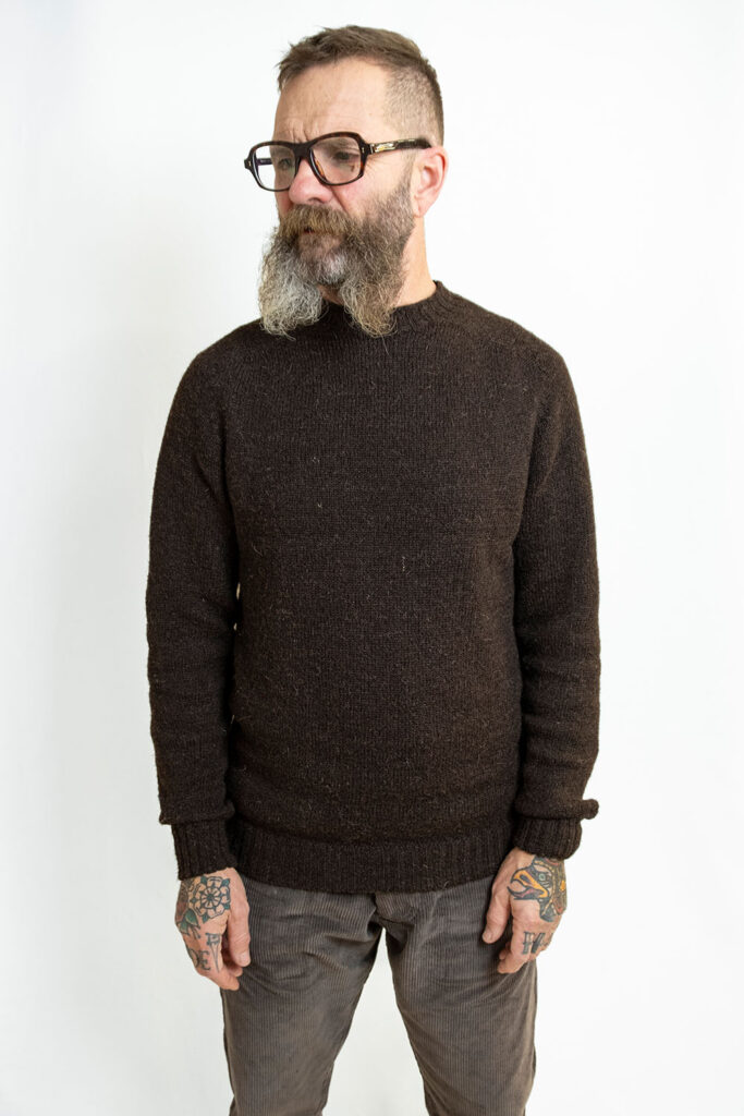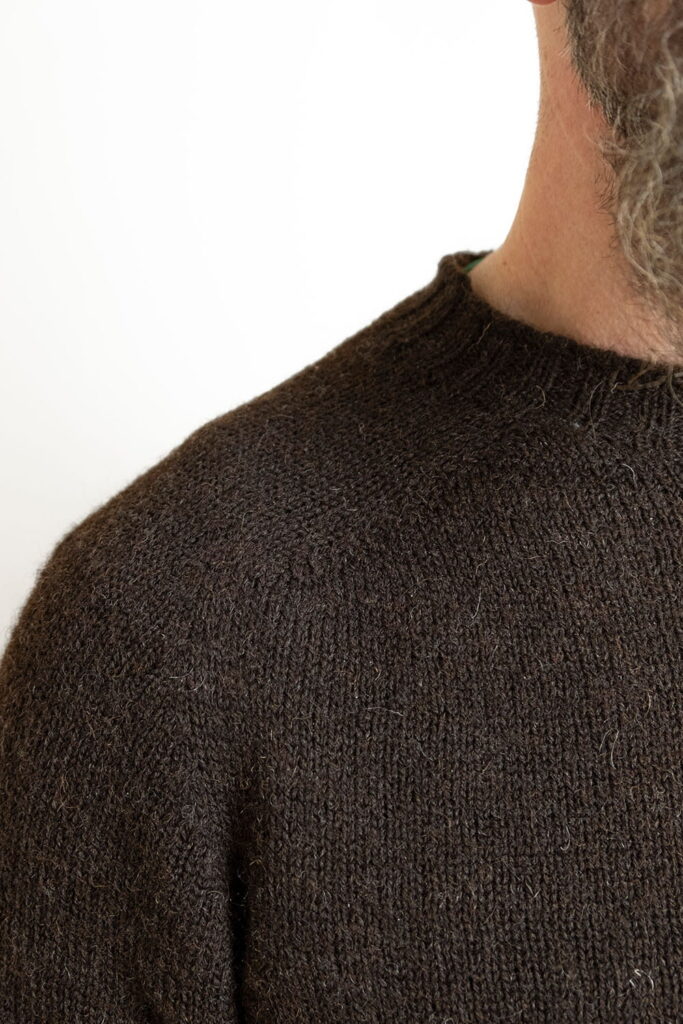 These jumpers are undyed and show the beautiful natural colours of this magnificent breed of sheep. Part of the charm of these jumpers is the natural variation of colour that comes from the individual fleece that the yarns come from. A bit like a fine beard you could say!