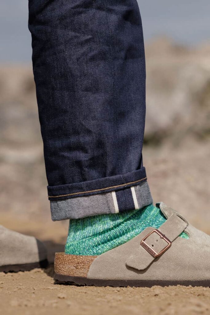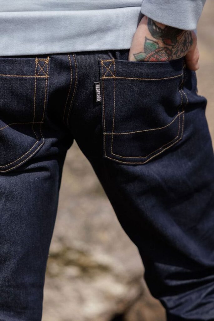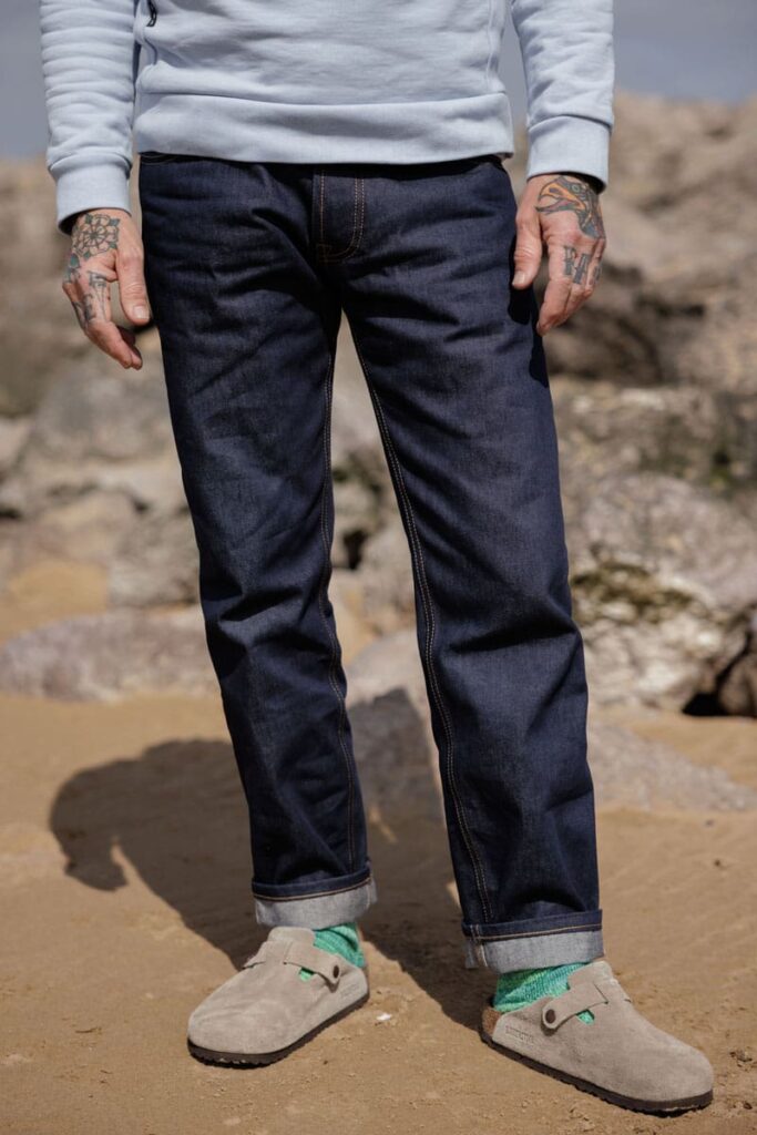 Slightly slimmer thigh and knee than our 177 model, but biggest difference is a lighter-weight eco-selvedge denim.