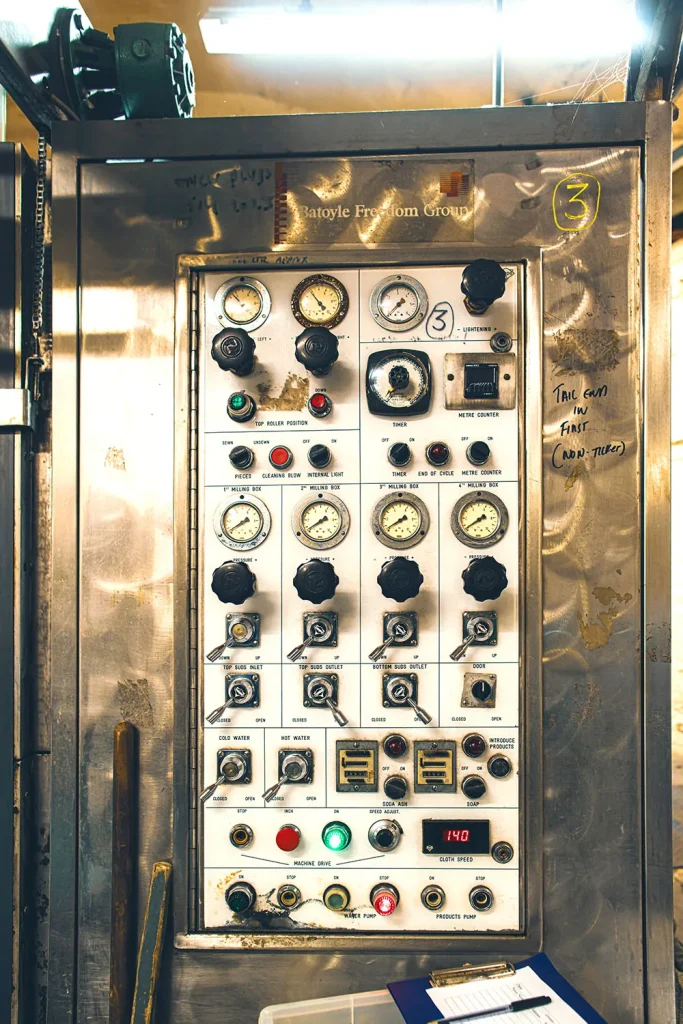 Some of Mallalieus’ machinery is Italian, but most was made in Northern England. The manufacturers’ nameplates read like the gravestones in a local cemetery…