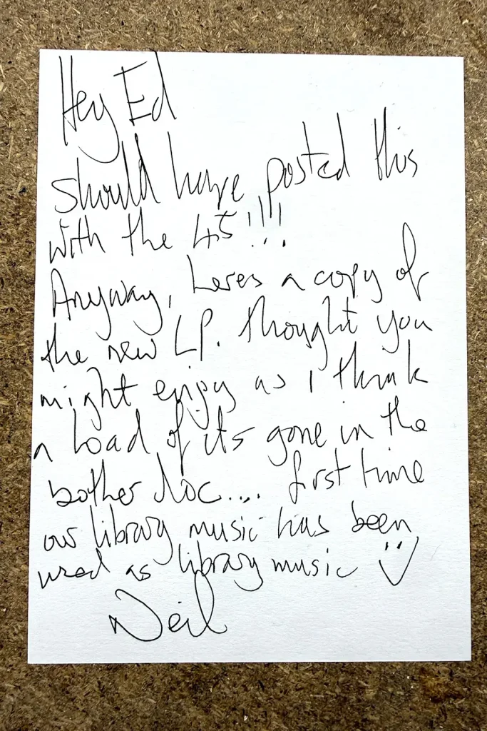 The Library Archive 4 is the album. We received our vinyl copy today and it came with this lovely note which includes the magic line, ‘first time our library music has been used as library music’. So cool!